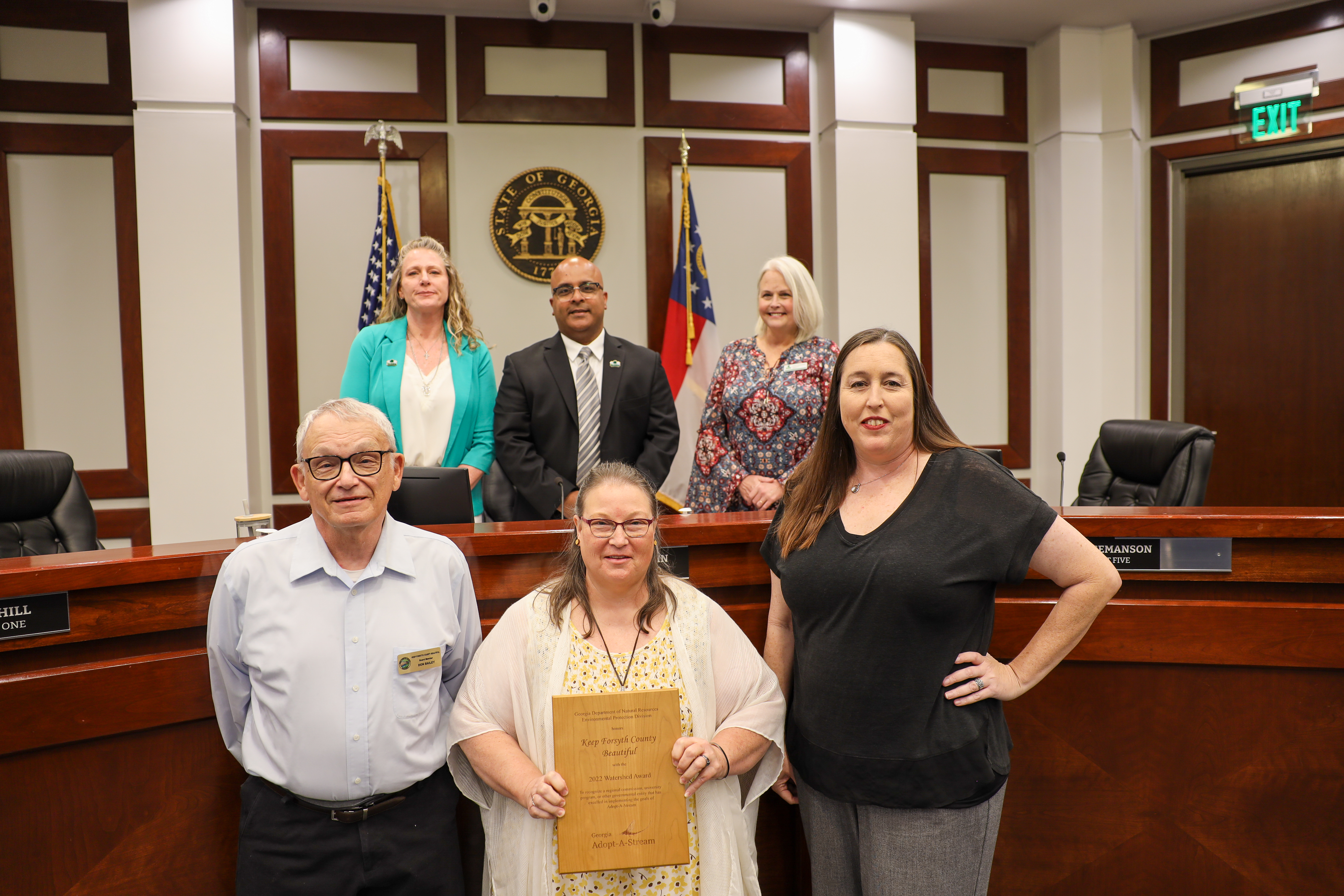 Keep Forsyth County Beautiful (KFCB) was recognized for recently being awarded a 2022 Adopt-A-Stream Watershed Award from the Georgia Department of Natural Resources Environmental Protection Division, which recognizes government agencies that have exceeded standards in implementing the five goals of the Adopt-A-Stream program.